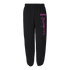Official Bailey Rose Spinn Merchandise. Black 50/50 cotton/polyester sweatpants with a relaxed fit featuring a pink design on the left leg.